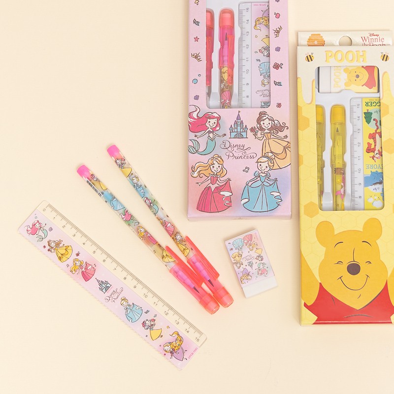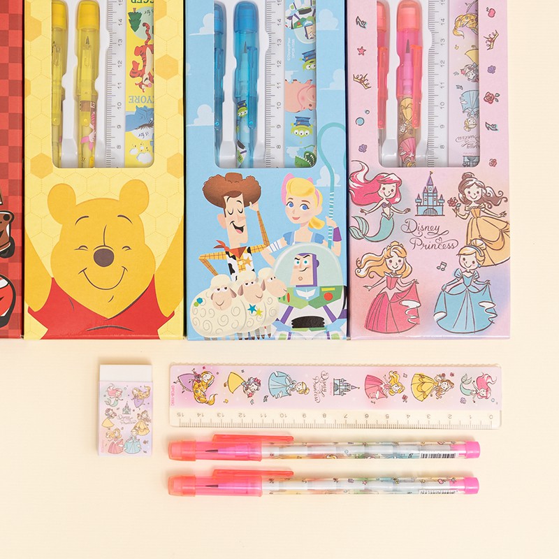 迪士尼 文具旗艦店|實用文具4入組 維尼 玩具總動員 公主 汽車總動員 文具組 文具 筆 尺 橡皮擦 NP196
