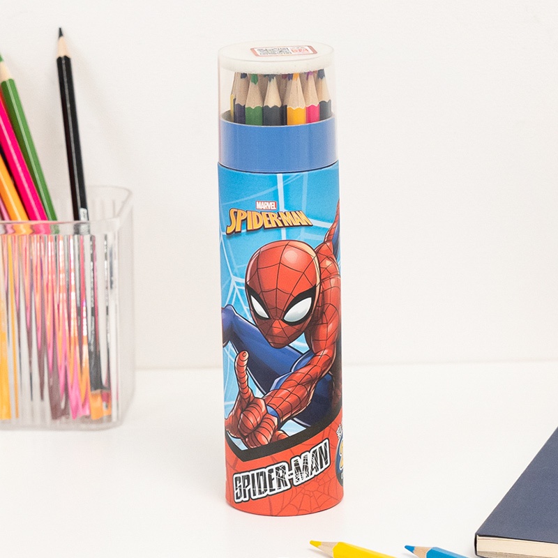 迪士尼|迪士尼24色桶裝彩色鉛筆 蜘蛛人 冰雪奇緣 艾莎 彩色鉛筆 文具 美術 用品 LJ139 文具旗艦店