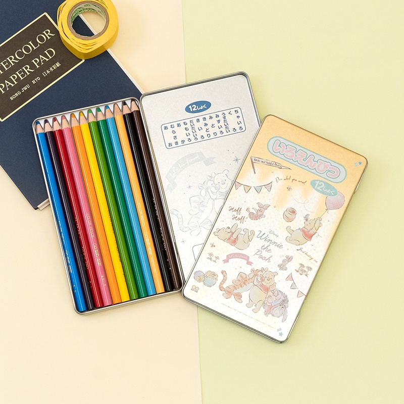 迪士尼|日貨12色鐵盒色鉛筆組 維尼 屹耳 跳跳虎 小豬 色鉛筆 鐵盒 日貨 筆 SS152 文具旗艦店