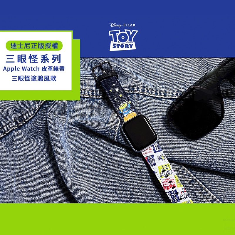 迪士尼|三眼怪皮革錶帶Apple Watchband 塗鴉 甜甜圈 貼紙 配件 Apple錶帶 KW059 文具旗艦店