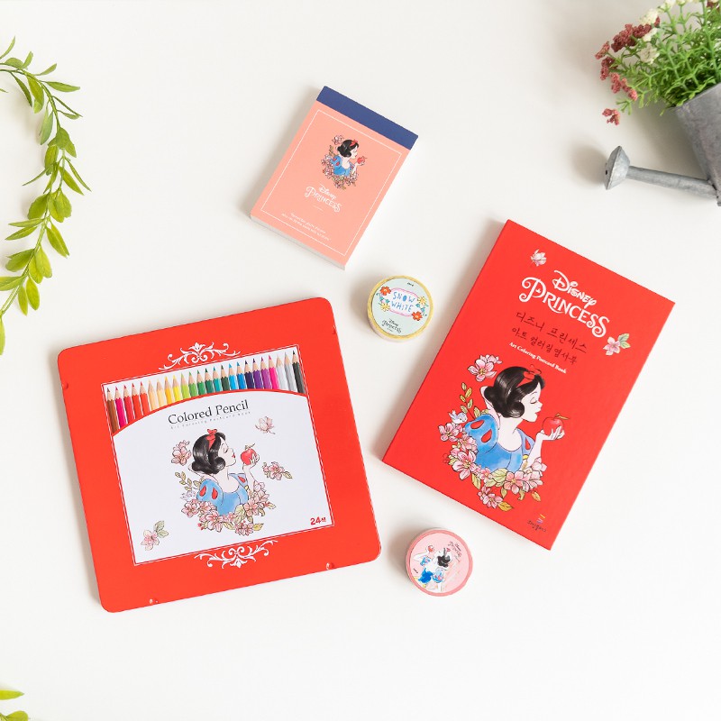 迪士尼 文具旗艦店|韓貨|著色明信片文具組 白雪公主 明信片 色鉛筆 紙膠帶 便條紙 著色本 畫畫 文具 HM061