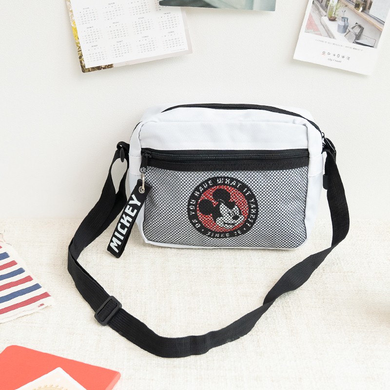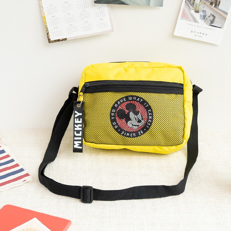 迪士尼 文具旗艦店|標誌雙拉透氣網格斜背包 米奇 側背包 運動包 背包 雙拉包 外出袋 斜背包 OE030