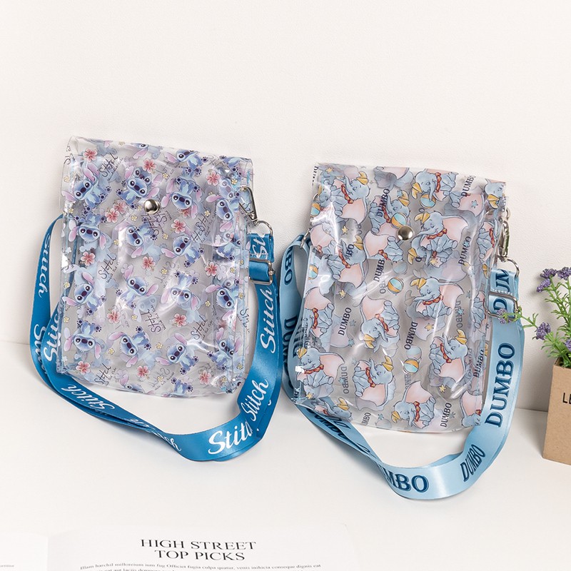 迪士尼 文具旗艦店|織帶掀蓋式透明斜背包 斜背包 維尼 玩具總動員 米妮 瑪麗貓 史迪奇 小飛象 奇蒂 公主 CA644