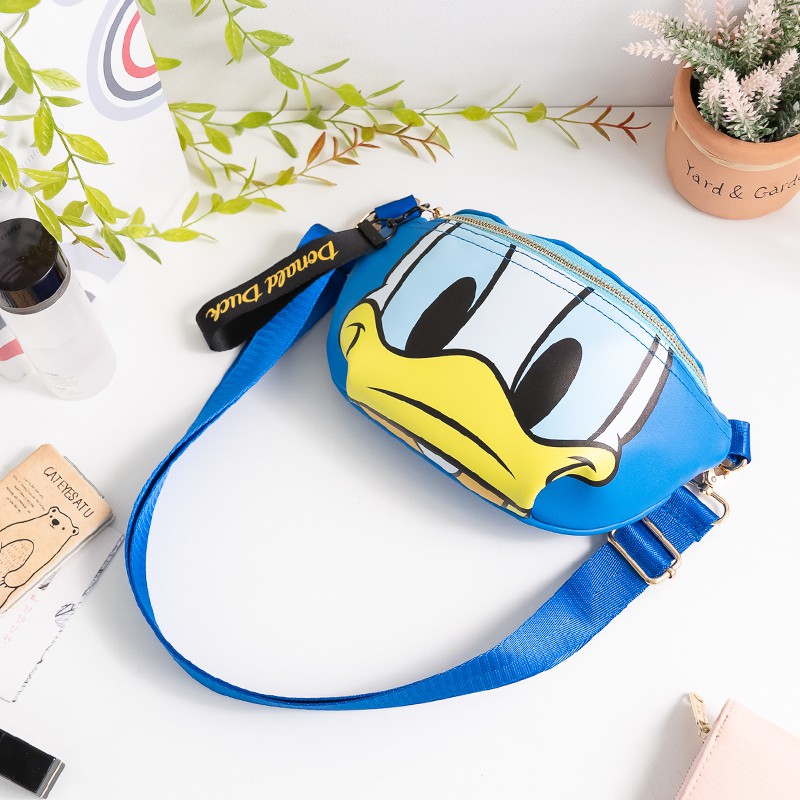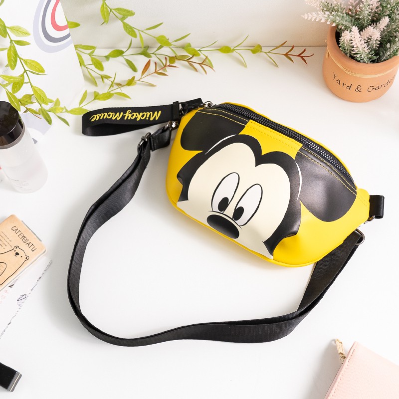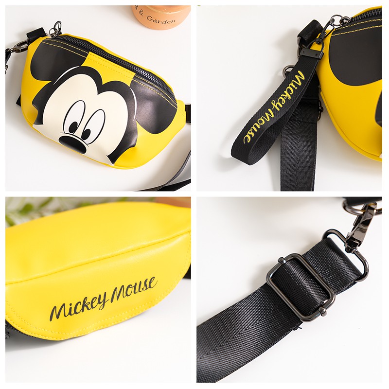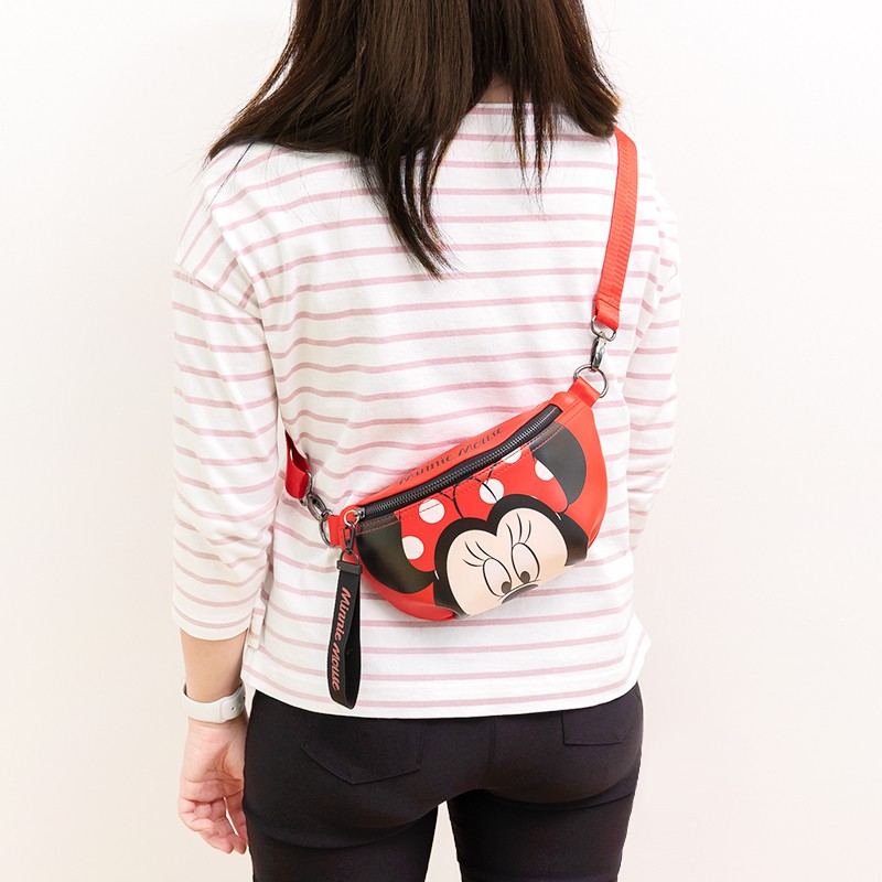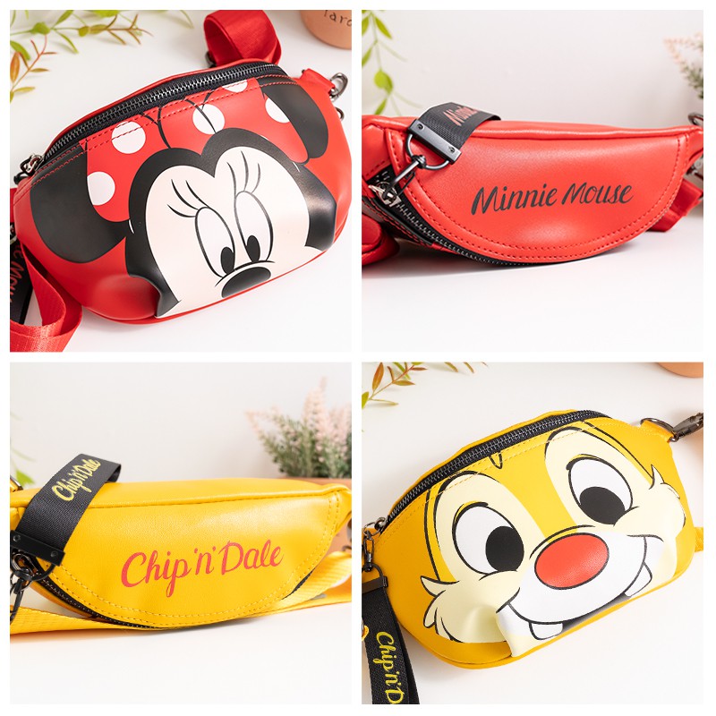 迪士尼 文具旗艦店|皮革圖繪腰包 米奇 米妮 唐老鴨 黛西 蒂蒂 斜背包 皮革 腰包 輕便 多功能 包包 OE039