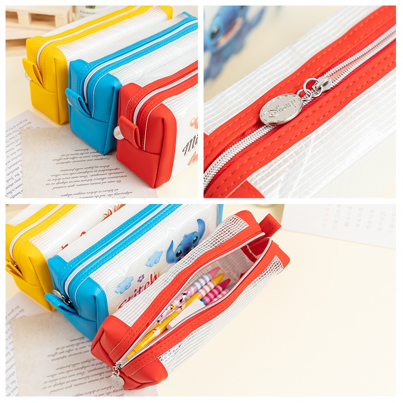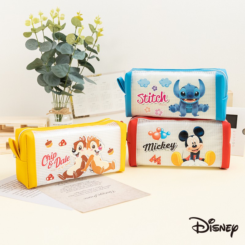 迪士尼 文具旗艦店|經典網格方型筆袋 米奇 史迪奇 奇奇蒂蒂 透明 方型 鉛筆盒 筆袋 收納 化妝包 文具 WP052