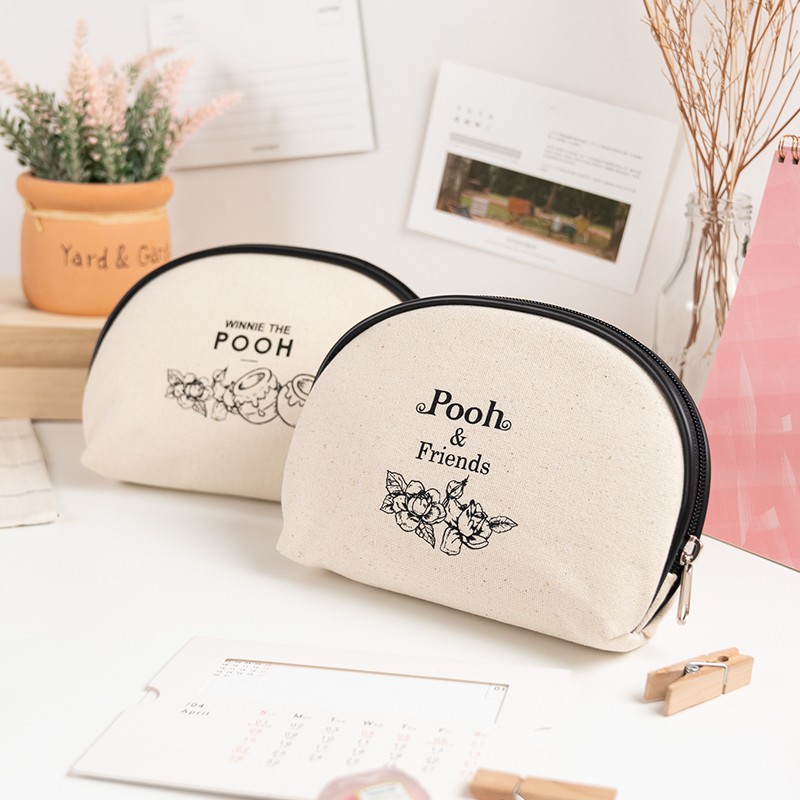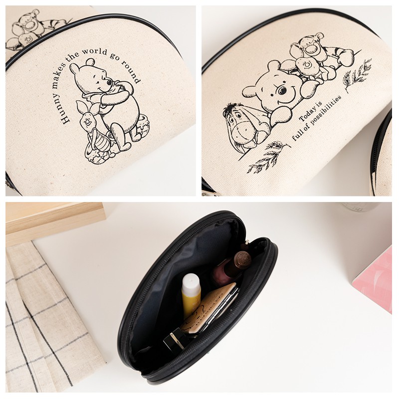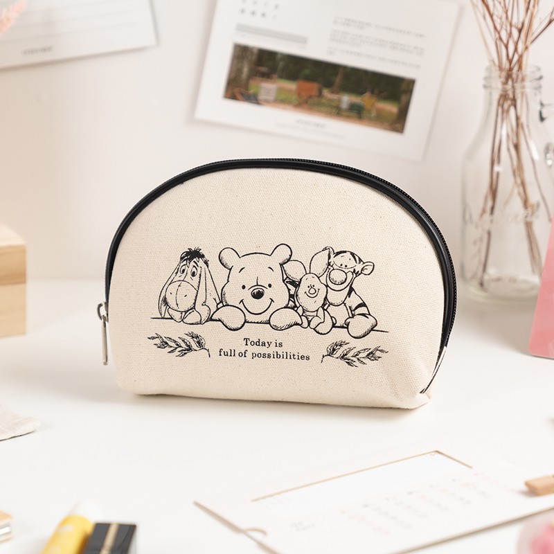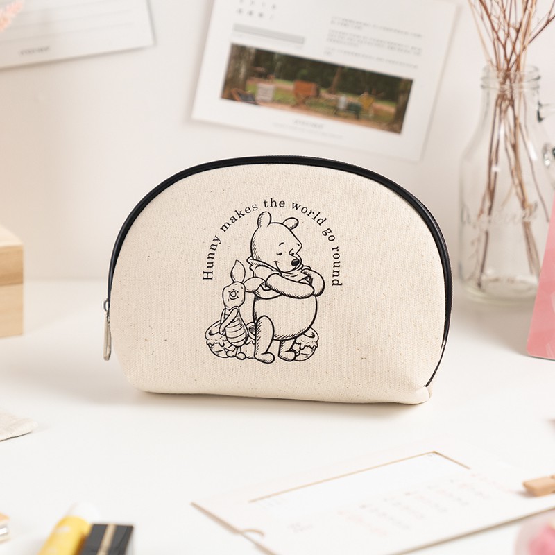 迪士尼 文具旗艦店|【MIT】半圓帆布萬用包 維尼 小豬 帆布包 萬用包 化妝包 貝殼包 包包 CA623