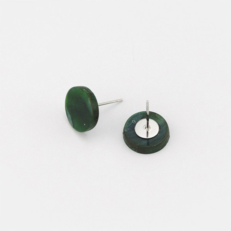 Snatch 煙霧迷綠圓盤貝殼琥珀手作耳環 耳針耳釘耳飾手創訂製抗過敏鋼針