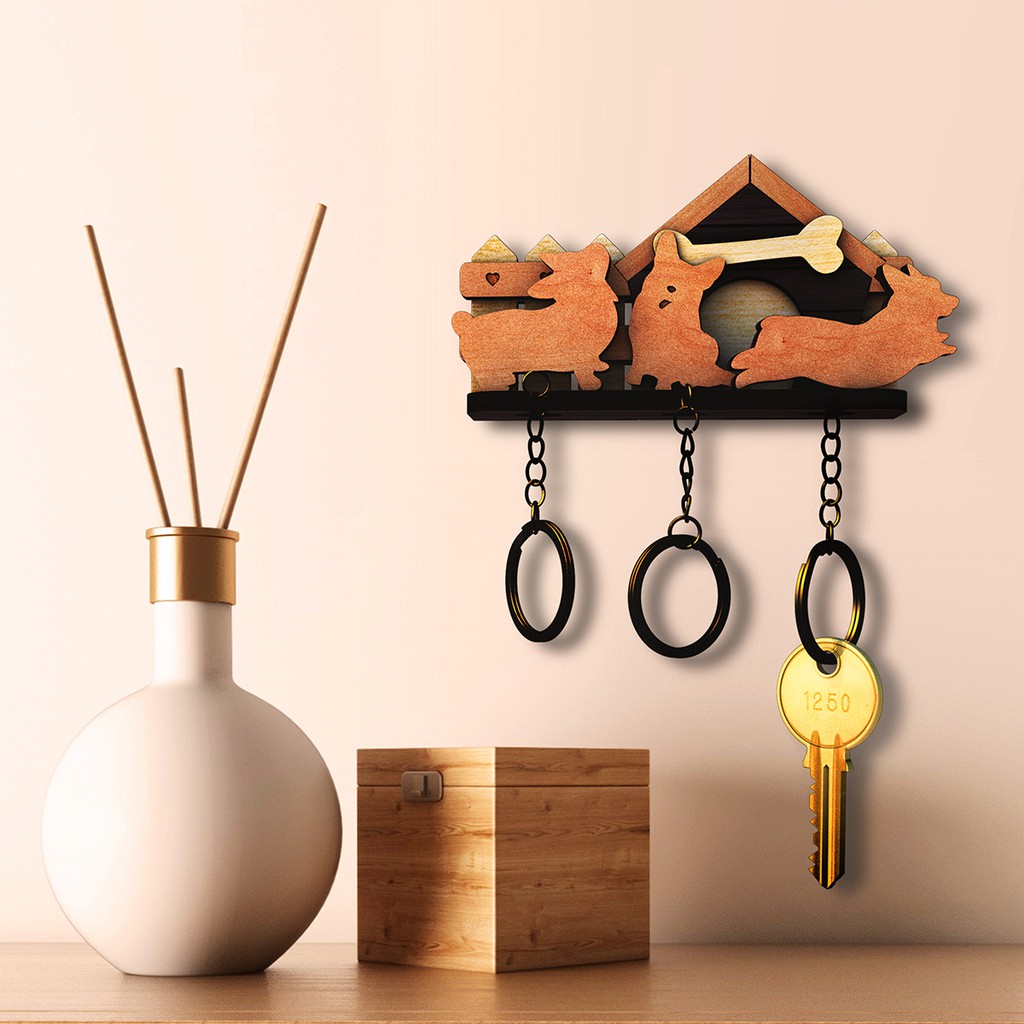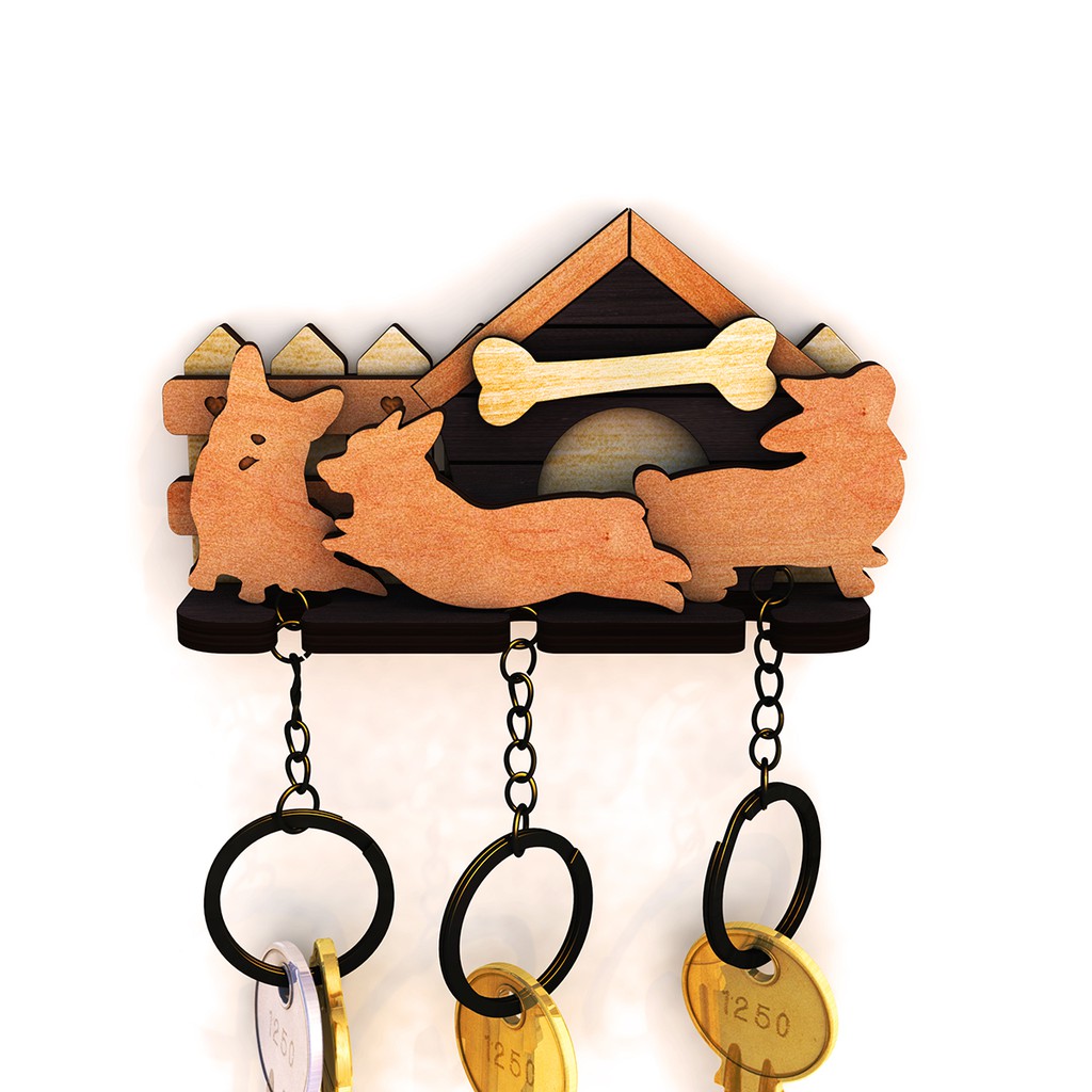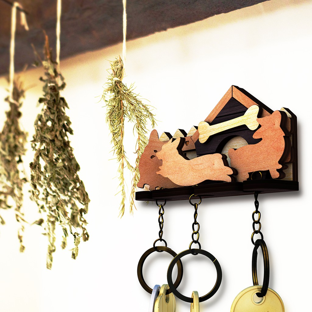 【DOGIS】一窩狗柯基 木製鑰匙架/掛架組 | 客製化刻字 玄關收納 入厝禮物 喬遷誌喜 (附包裝)