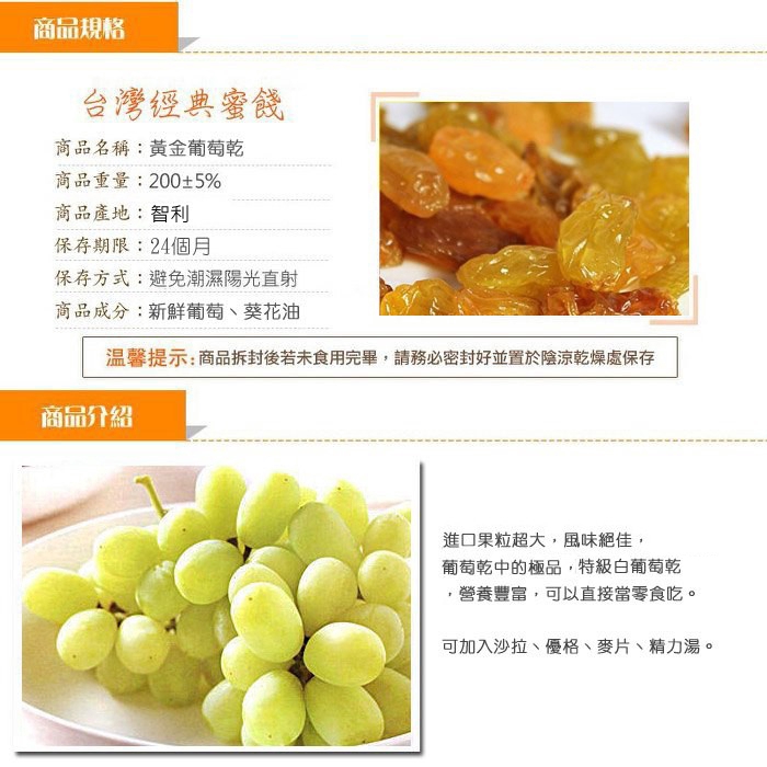 【正心堂】黃金葡萄乾 200克 大葡萄乾 白葡萄乾 果乾 蜜餞 葡萄 葡萄乾