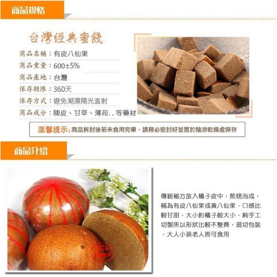 【正心堂】有皮八仙果 600克 黃八仙果 黑中柚 真空包裝整顆 赤中柚 蜜餞 果乾 八仙果