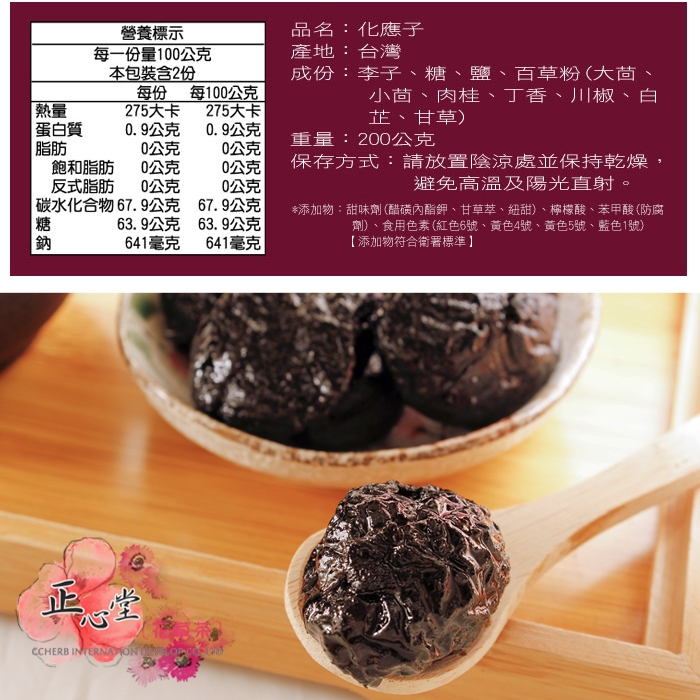 【正心堂】 化應子 200克 夾小番茄最搭 蜜餞 果乾 梅子 台灣蜜餞 古早味 無籽