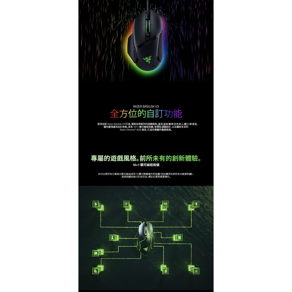 RAZER 雷蛇 BASILISK V3 巴塞利斯蛇 V3 電競滑鼠 領券再折