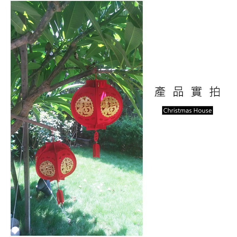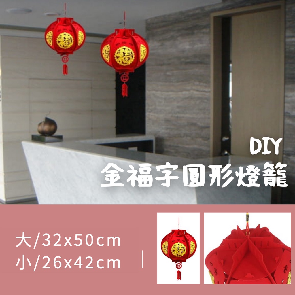 【現貨】DIY新年燈籠吊飾 金福字圓形燈籠 燈籠吊飾 新年佈置 聖誕館