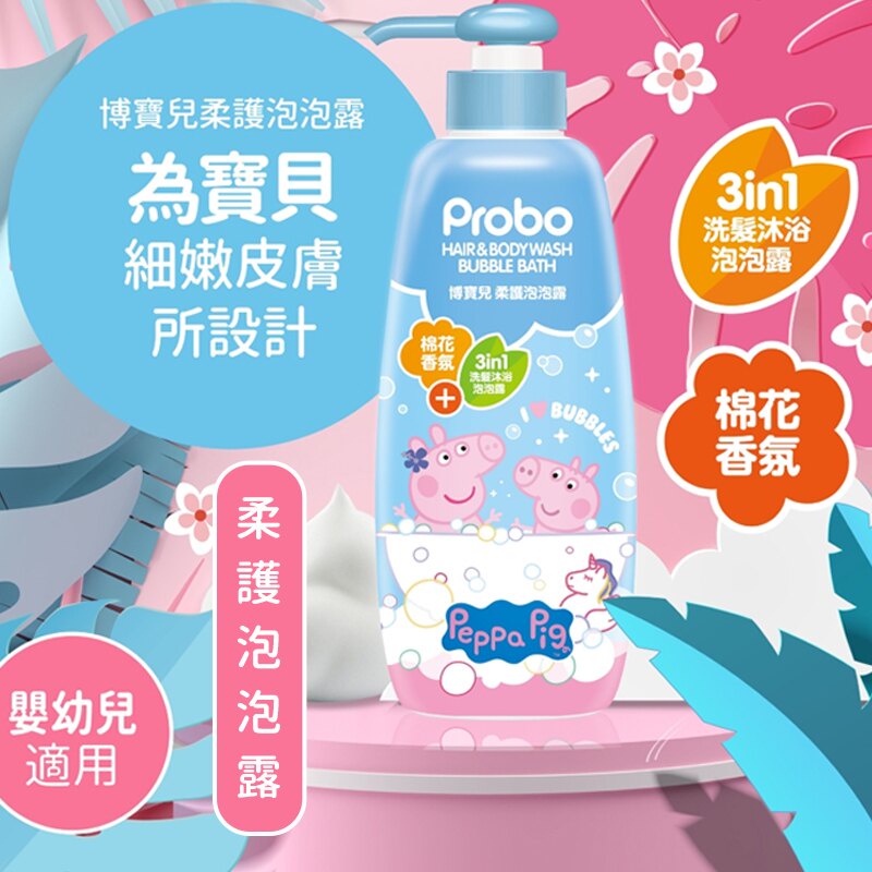 PROBO 博寶兒 Peppa Pig 粉紅豬小妹洗沐系列3入組 沐浴乳 洗髮精 泡泡浴 佩佩豬 500ml