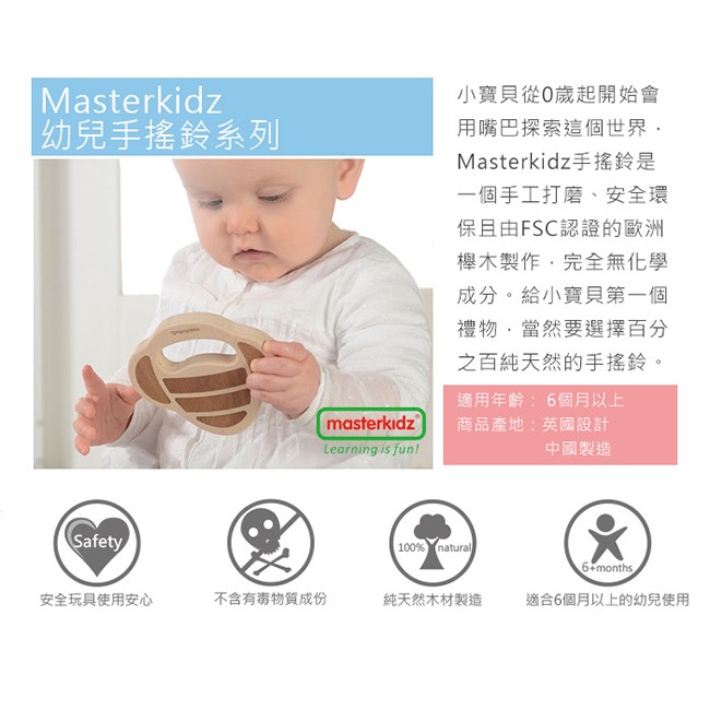 【英國Masterkidz】天然木製手搖鈴-蜜蜂