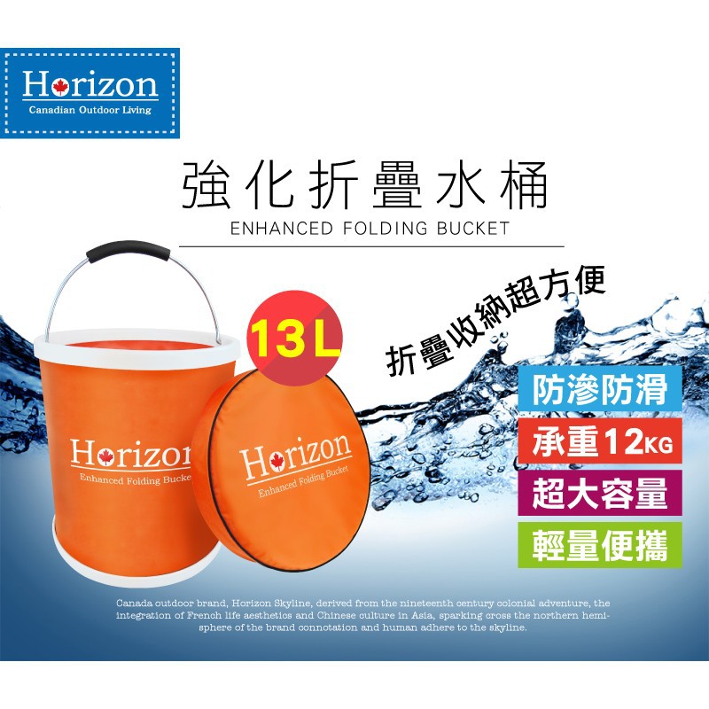 【Horizon 天際線】強化折疊野營水桶13L 穩固耐磨 野營釣魚 打掃洗車 2000D