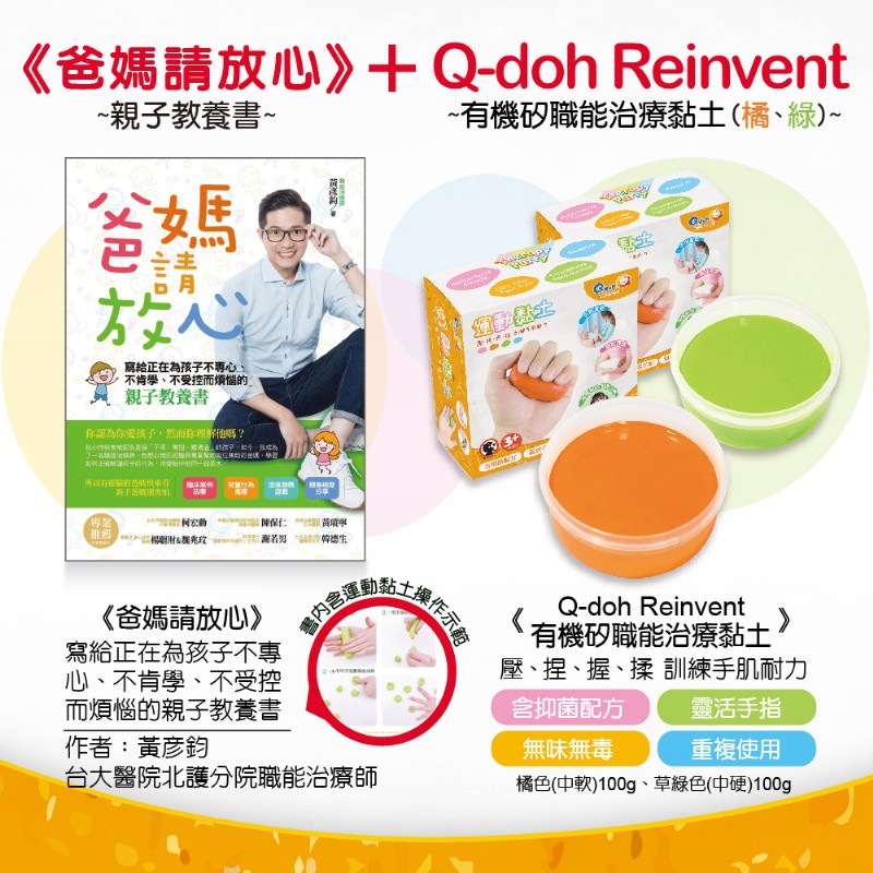 【Q-doh】有機矽職能治療黏土(橘色+草綠100g)+親子教養書 促銷包