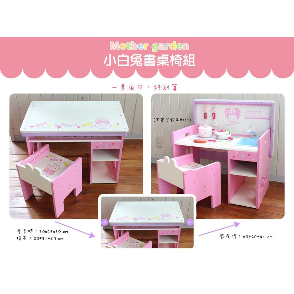 【日本Mother Garden】野草莓 小白兔書桌椅組 附桌上型廚具台