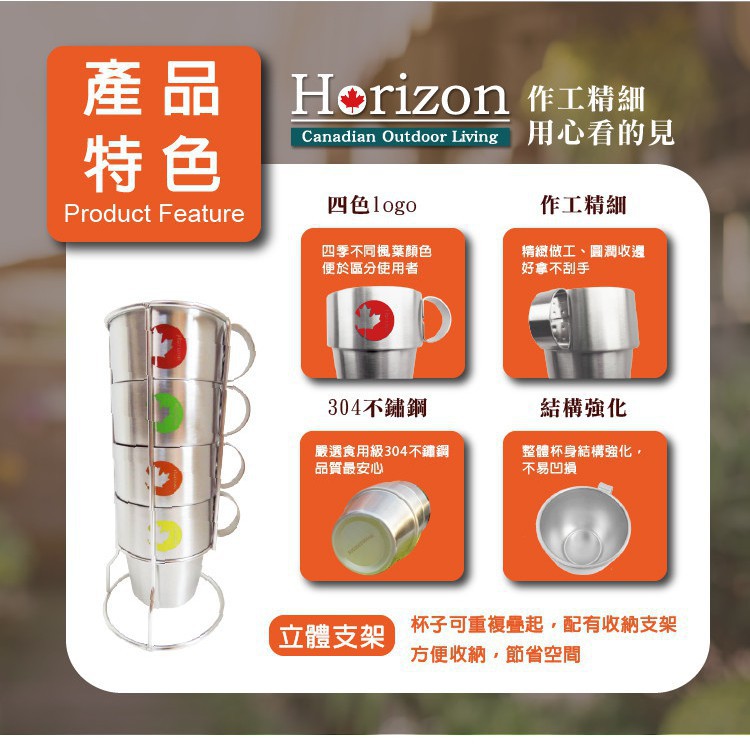 【Horizon 天際線】四季楓彩「真304不鏽鋼」野營咖啡杯四件組(附收納袋)