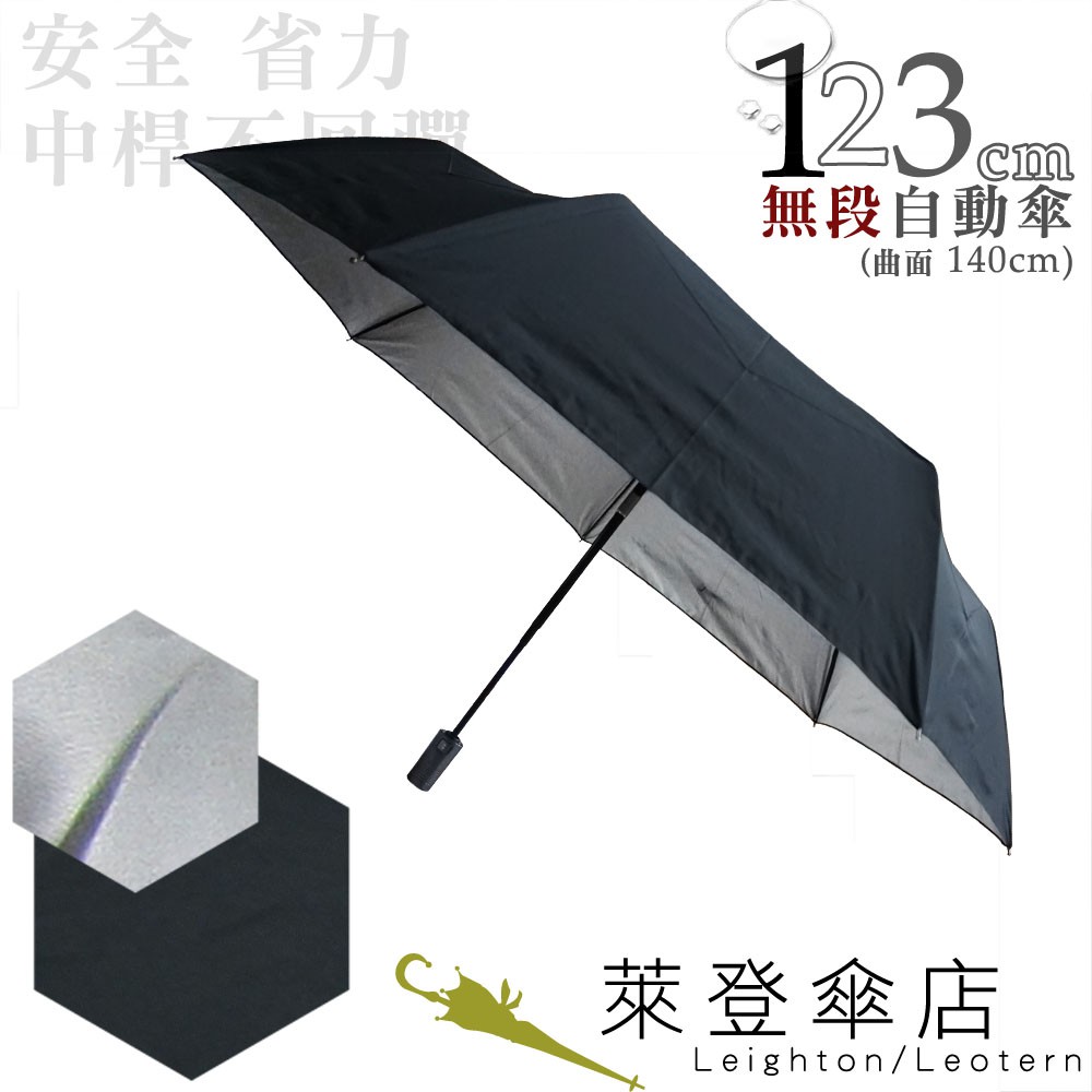 【萊登傘】雨傘 印花銀膠 不回彈 123cm超大無段自動傘 抗UV 防風抗斷 黑在外