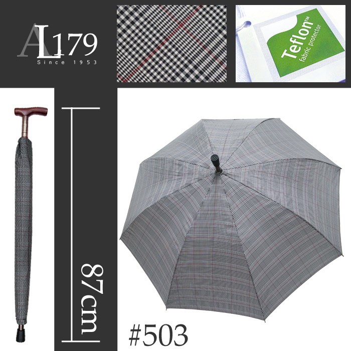 【萊登傘】雨傘 調高健行傘 一般高度 輔助 格紋布 長輩禮物 黑白紅格