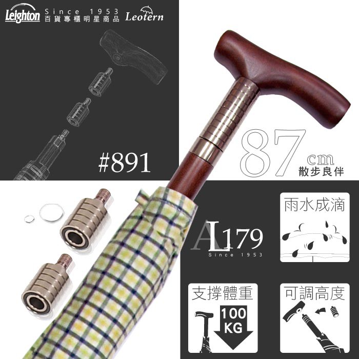 【萊登傘】雨傘 調高健行傘 一般高度 輔助 格紋布 長輩禮物 黃黑白格