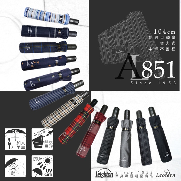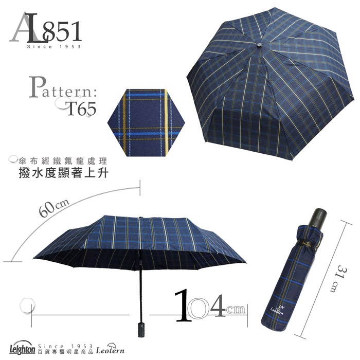 【萊登傘】雨傘 印花鐵氟龍 104cm加大自動傘 易甩乾 防風抗斷 藍黃格紋