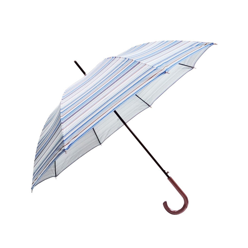 【萊登傘】雨傘 抗UV 自動直傘 木質把手 傘面100公分 防曬 藍白橫條 特價