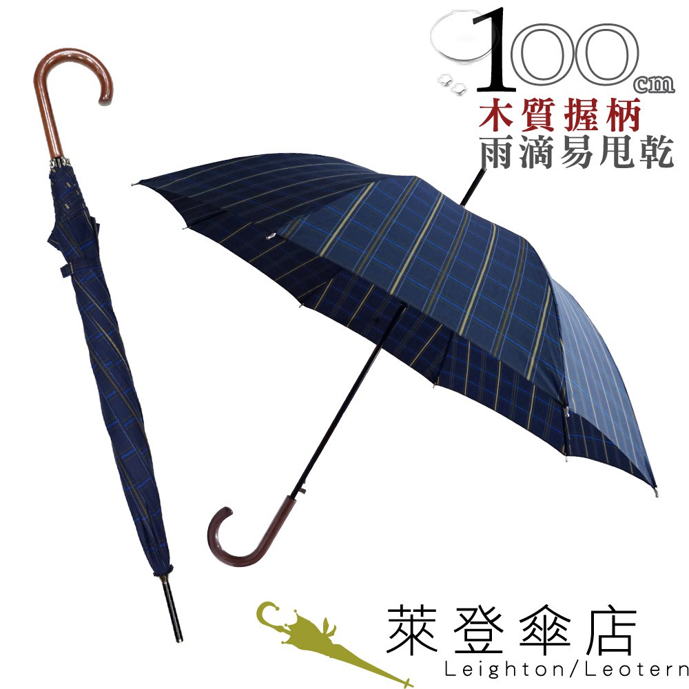 【萊登傘】雨傘 超撥水 自動直傘 木質把手 傘面100公分 鐵氟龍 藍黃格紋 特價