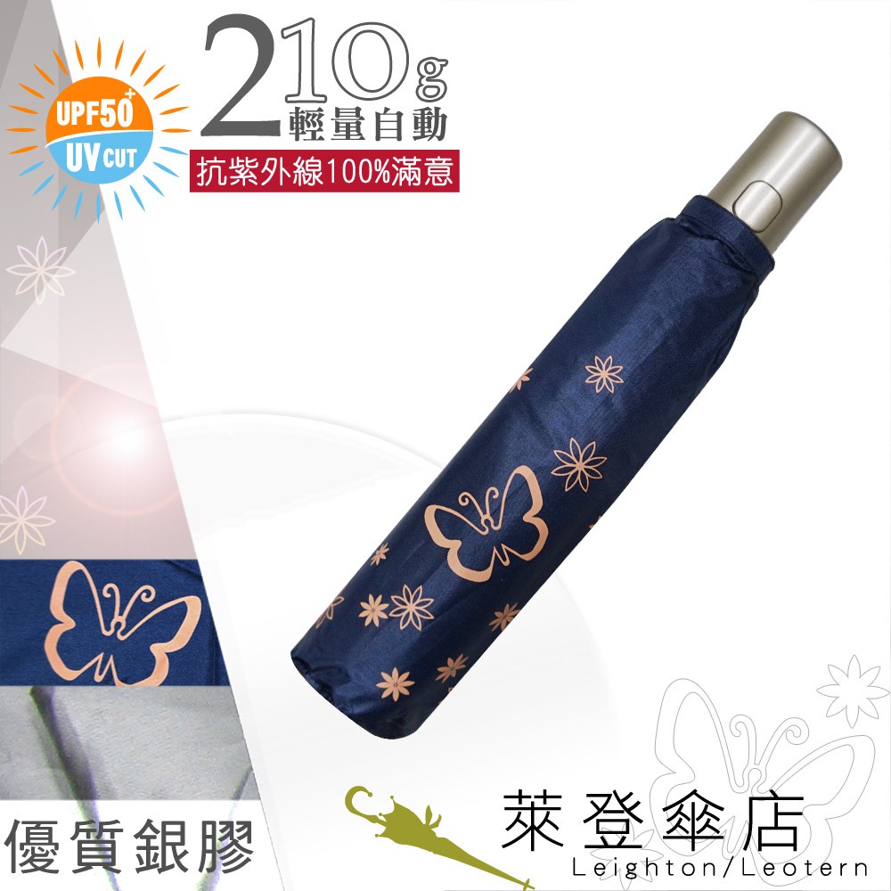 【萊登傘】雨傘 UPF50+ 輕量自動傘 陽傘 抗UV 防曬 自動開合 銀膠 蝴蝶深藍