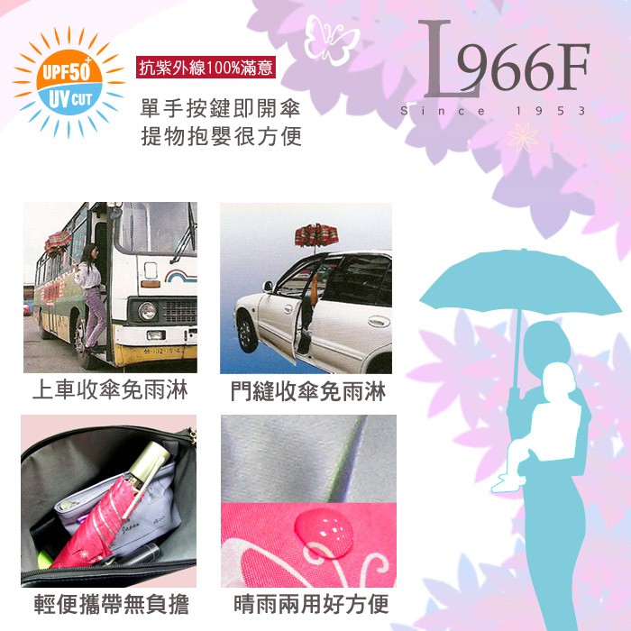 【萊登傘】雨傘 UPF50+ 輕量自動傘 陽傘 抗UV 防曬 自動開合 銀膠 蝴蝶粉紫