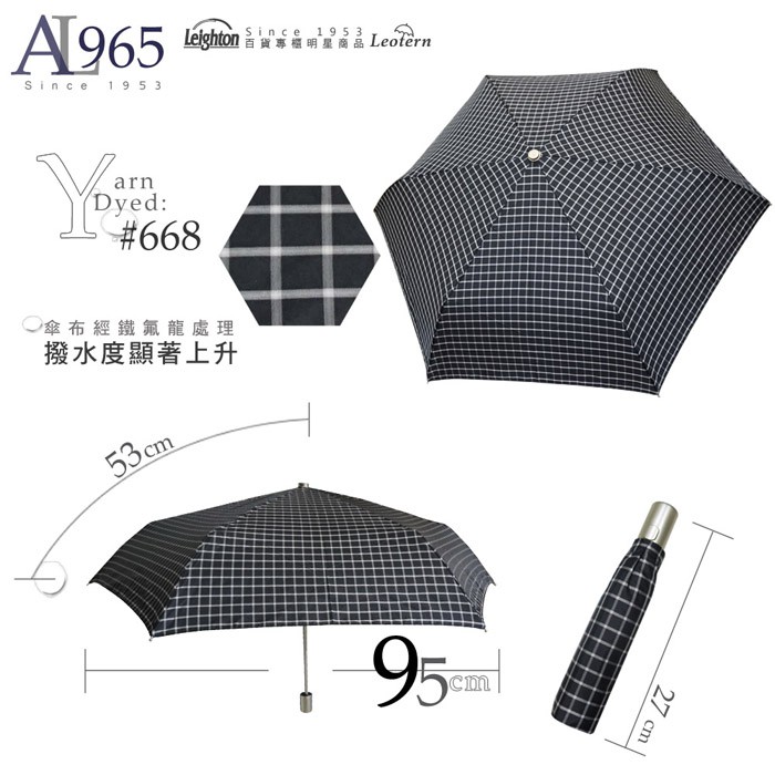 【萊登傘】雨傘 先染色紗格紋布 輕量自動傘 易甩乾 自動開合 黑白細格