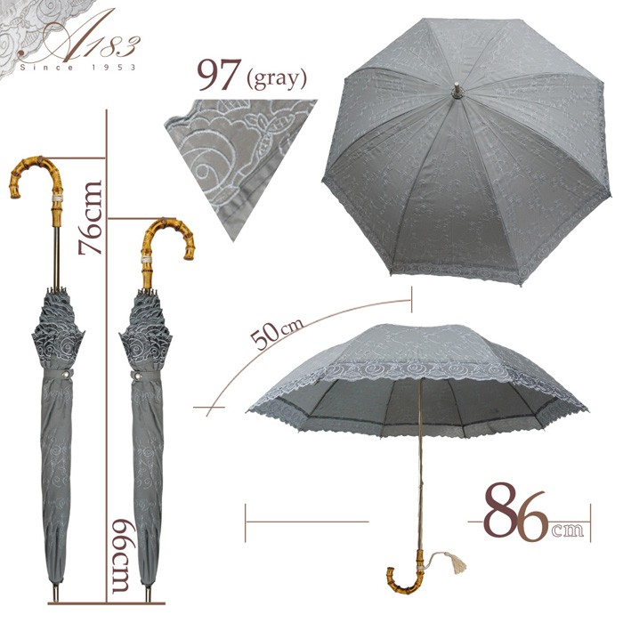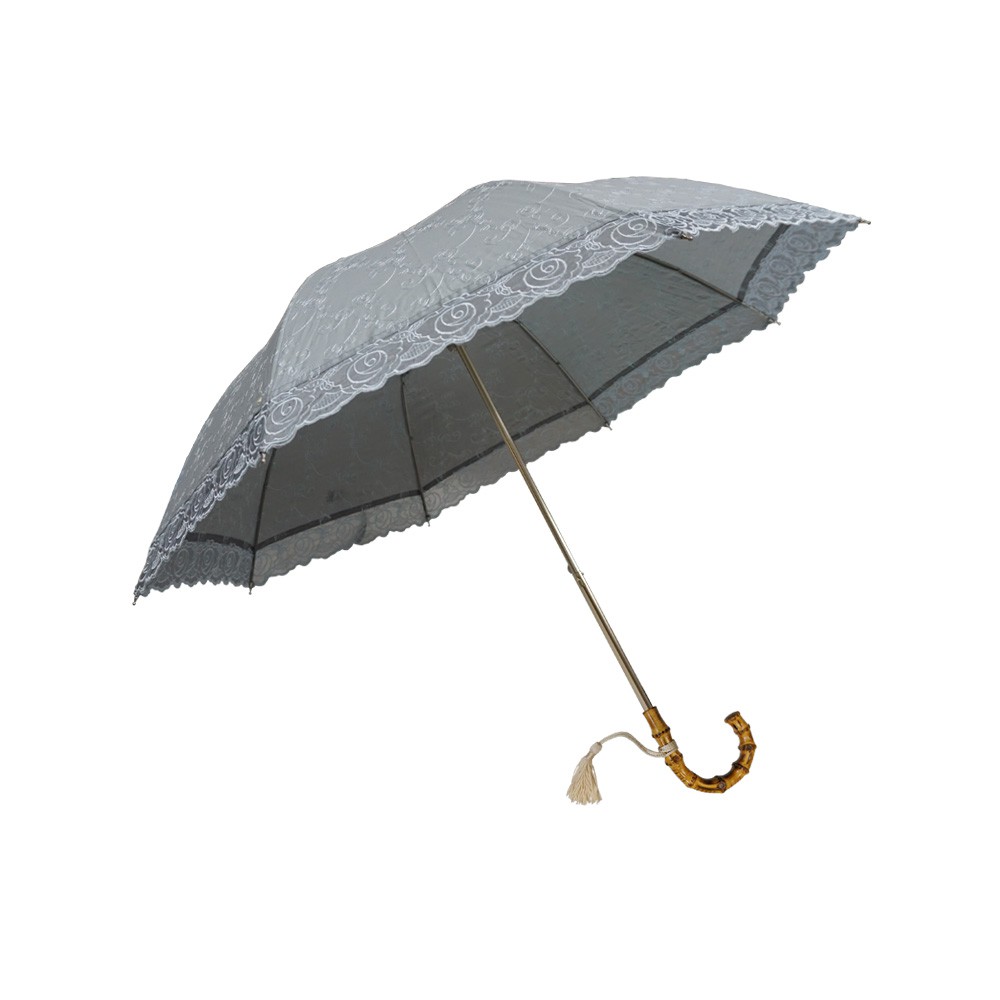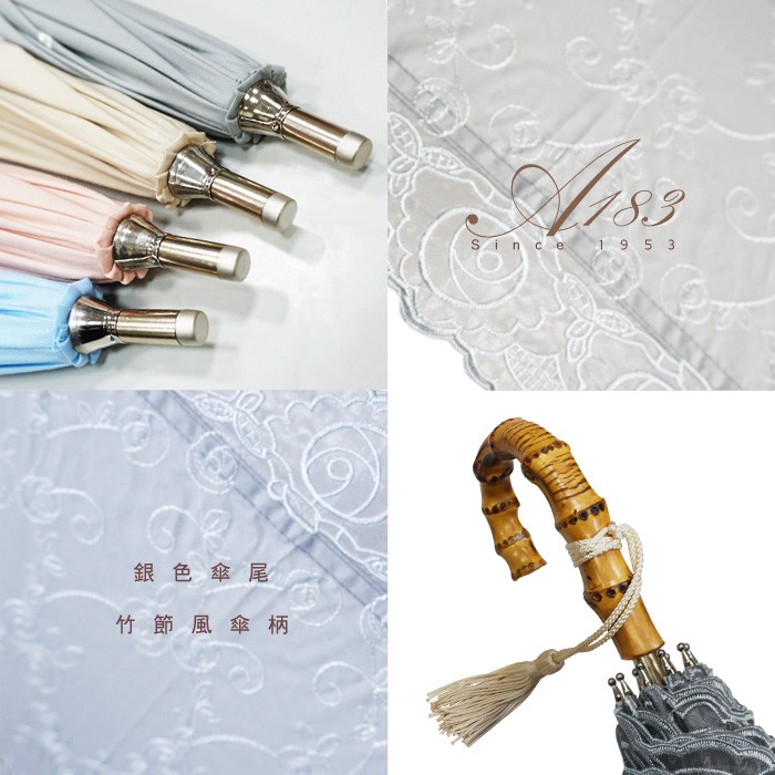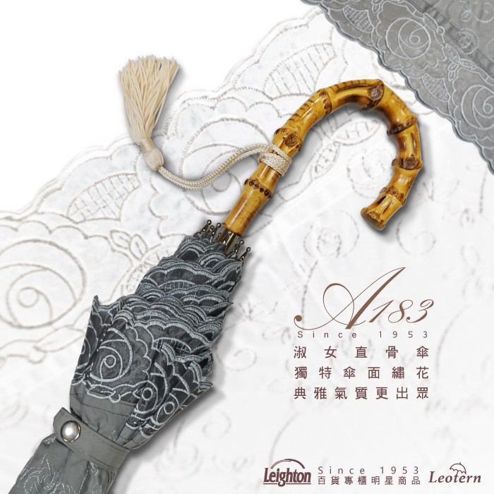 【萊登傘】 刺繡傘 手開直骨傘 竹節把手 流蘇 Leighton 布面大花(灰色) 特價