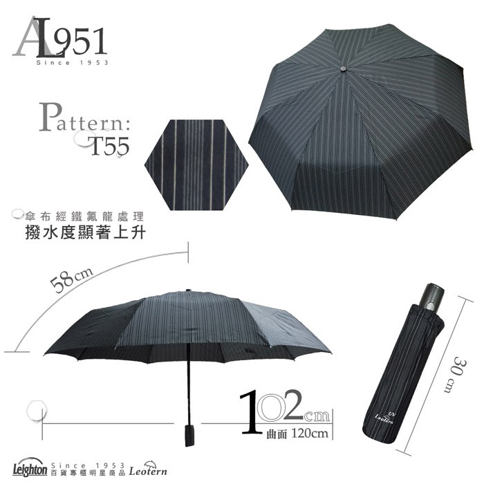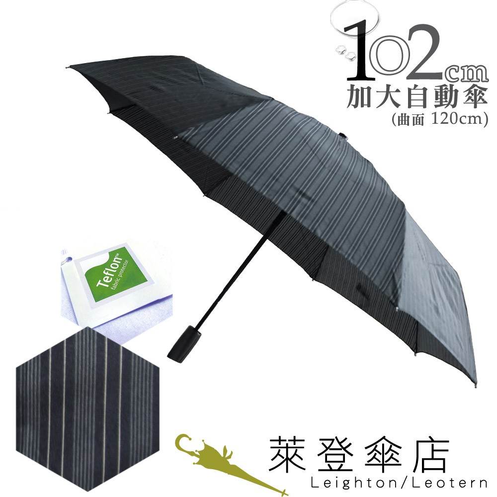 【萊登傘】雨傘 印花鐵氟龍 102cm大傘面自動傘 易甩乾 防風抗斷 黑灰條紋