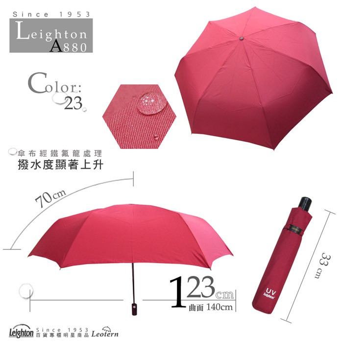 【萊登傘】雨傘 鐵氟龍 不回彈 123cm超大無段自動傘 可遮三人 防撥水 防風抗斷 熱情深紅