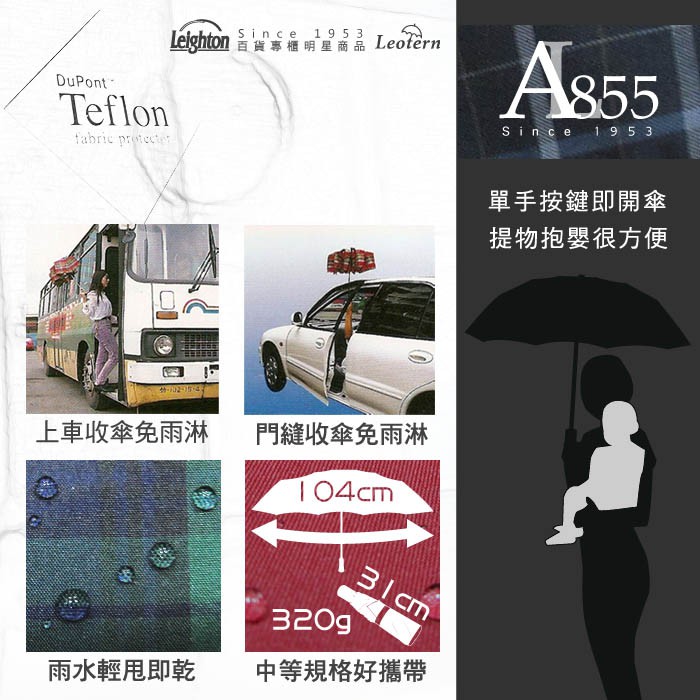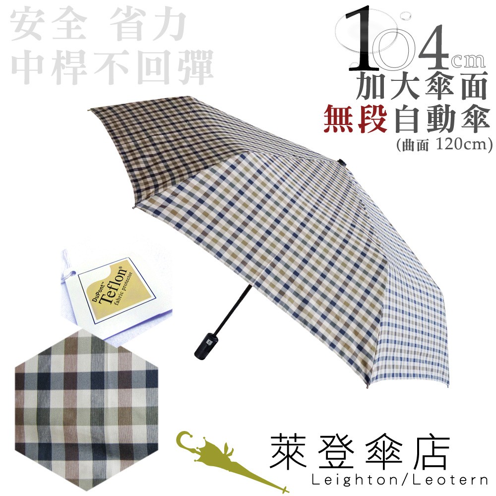 【萊登傘】雨傘 格紋布 不回彈 104cm加大自動傘 易甩乾 防風抗斷 米細格
