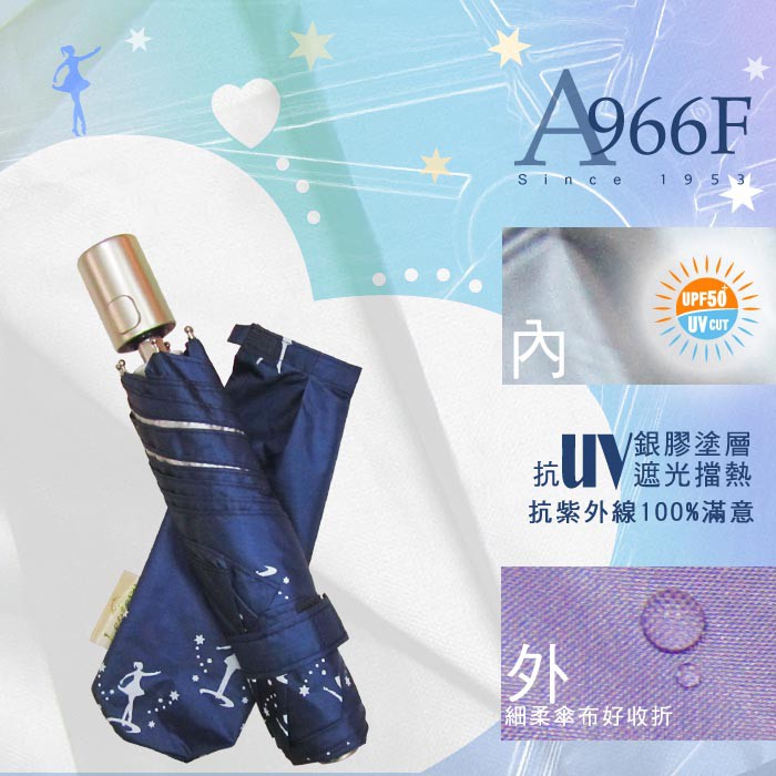 【萊登傘】雨傘 UPF50+ 輕量自動傘 陽傘 抗UV 防曬 自動開合 銀膠 舞孃深藍