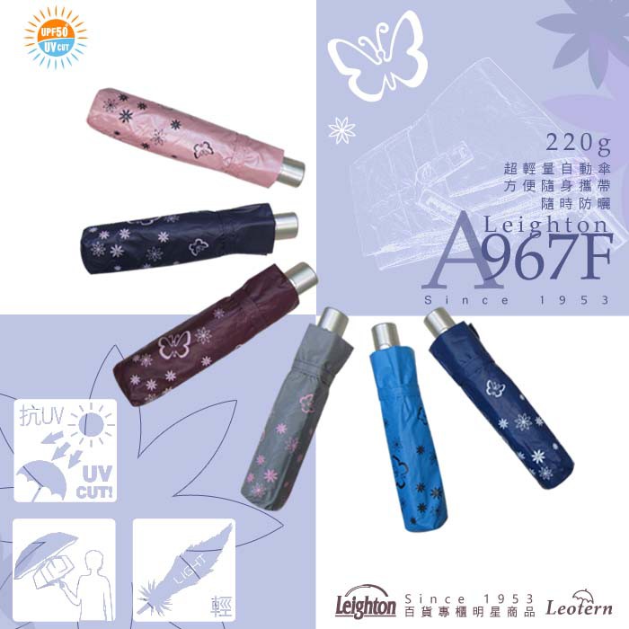 【萊登傘】雨傘 UPF50+ 輕量自動傘 陽傘 抗UV 防曬 自動開合 色膠 蝴蝶灰色