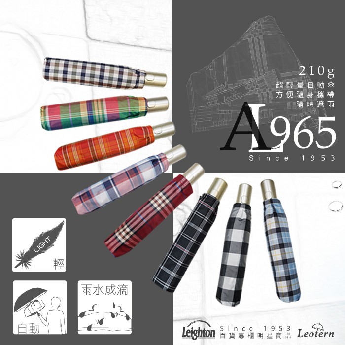 【萊登傘】雨傘 先染色紗格紋布 輕量自動傘 易甩乾 自動開合 藍白格紋