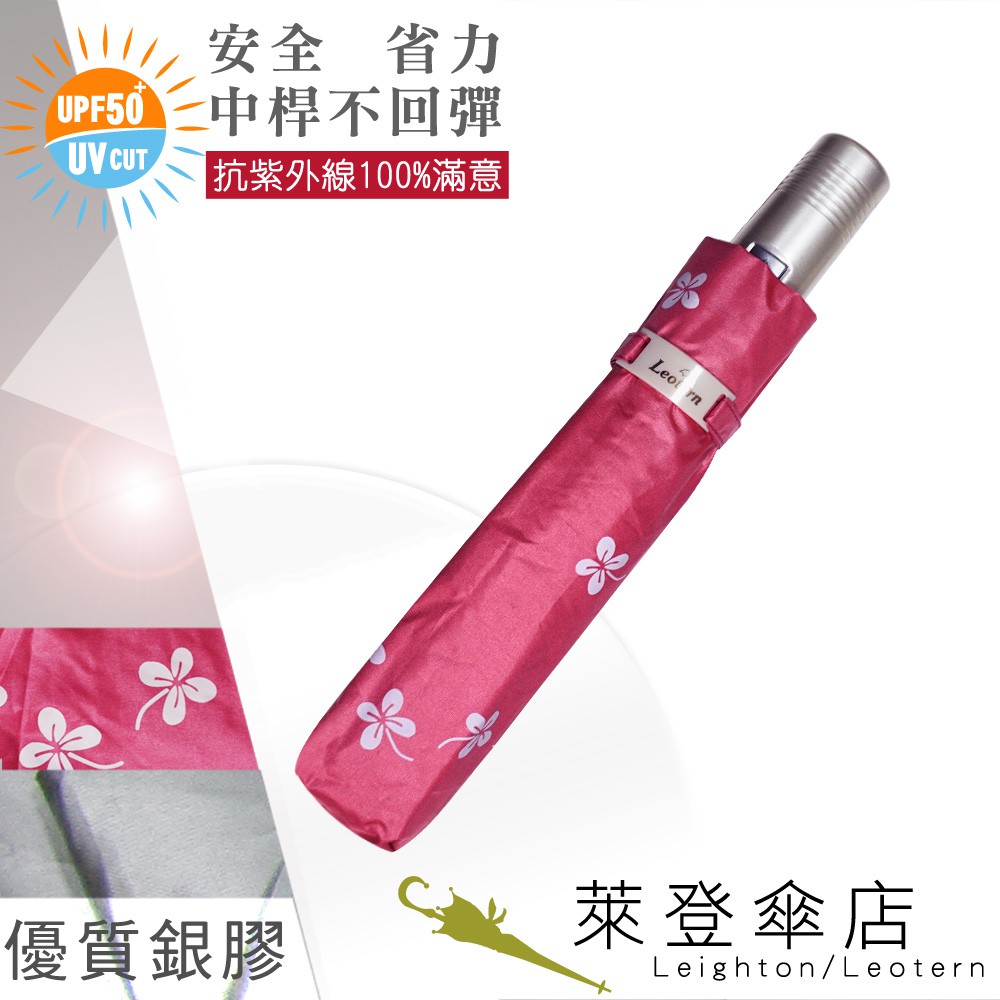 【萊登傘】雨傘 UPF50+ 不回彈 陽傘 抗UV 防曬 無段自動傘 銀膠 幸運草桃紅