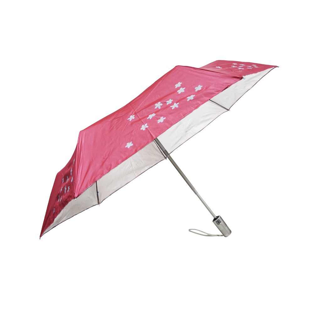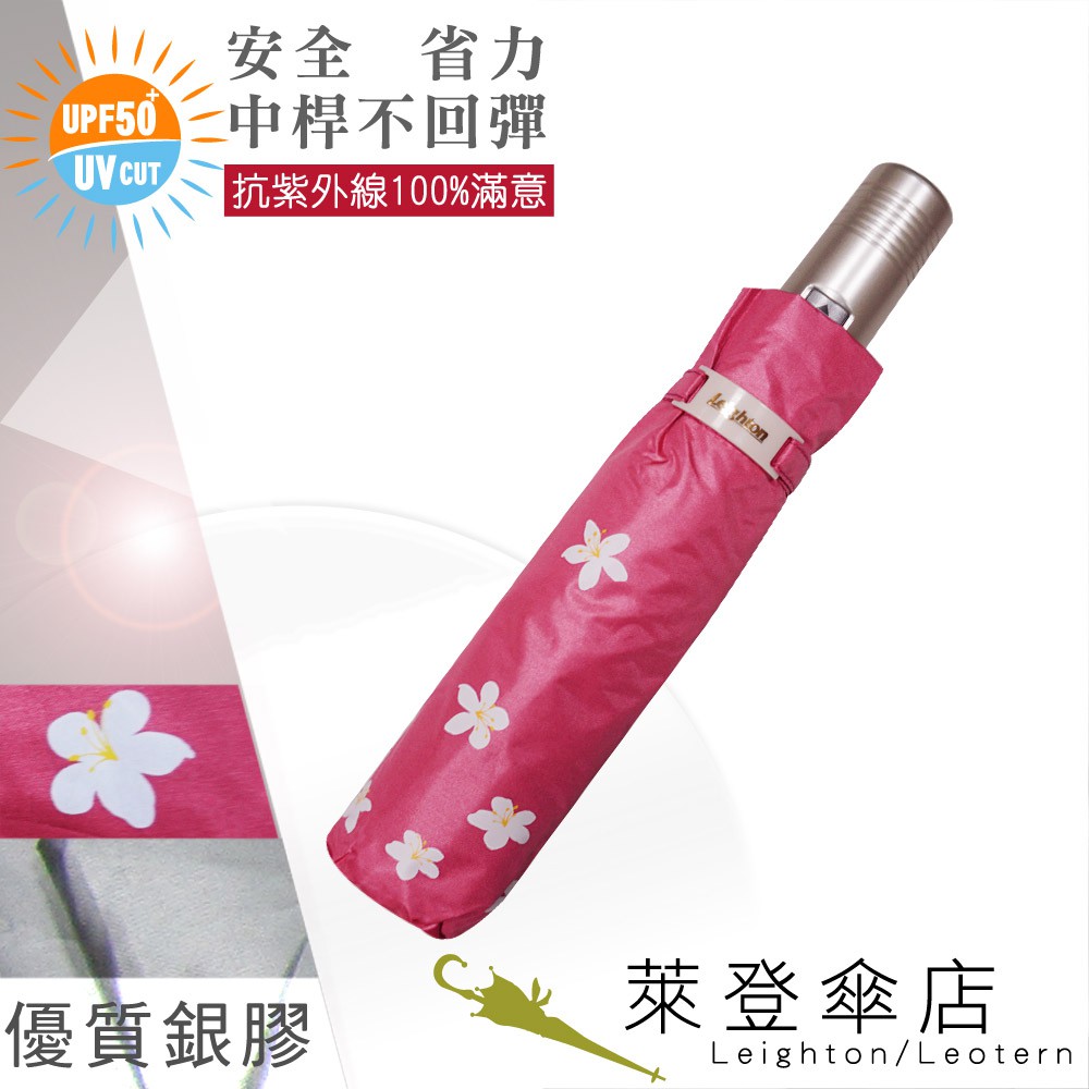 【萊登傘】雨傘 UPF50+ 不回彈 陽傘 抗UV 防曬 無段自動傘 銀膠 桐花桃紅
