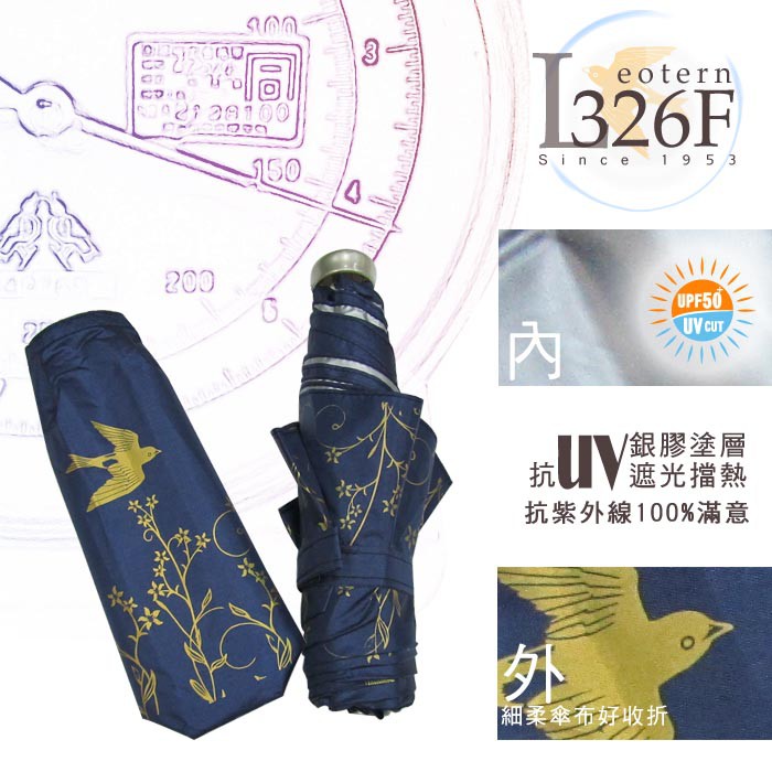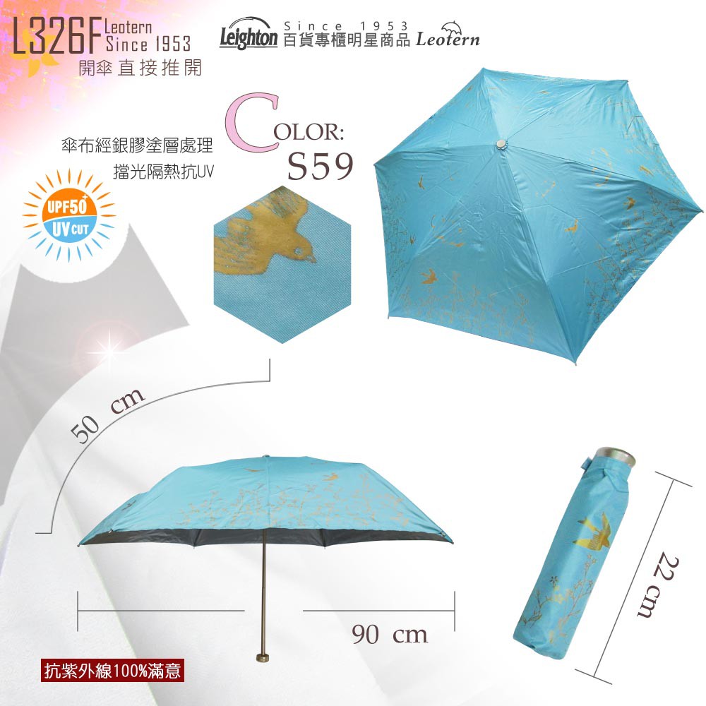 【萊登傘】雨傘 UPF50+ 易開輕傘 陽傘 抗UV 防曬 輕傘 銀膠 飛燕天藍
