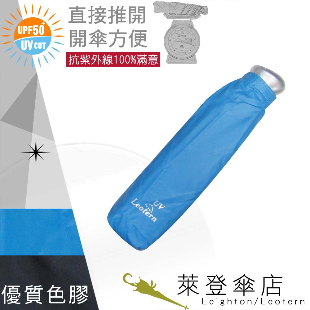 【萊登傘】雨傘 UPF50+ 易開輕傘 陽傘 抗UV 防曬 輕傘 色膠 海藍