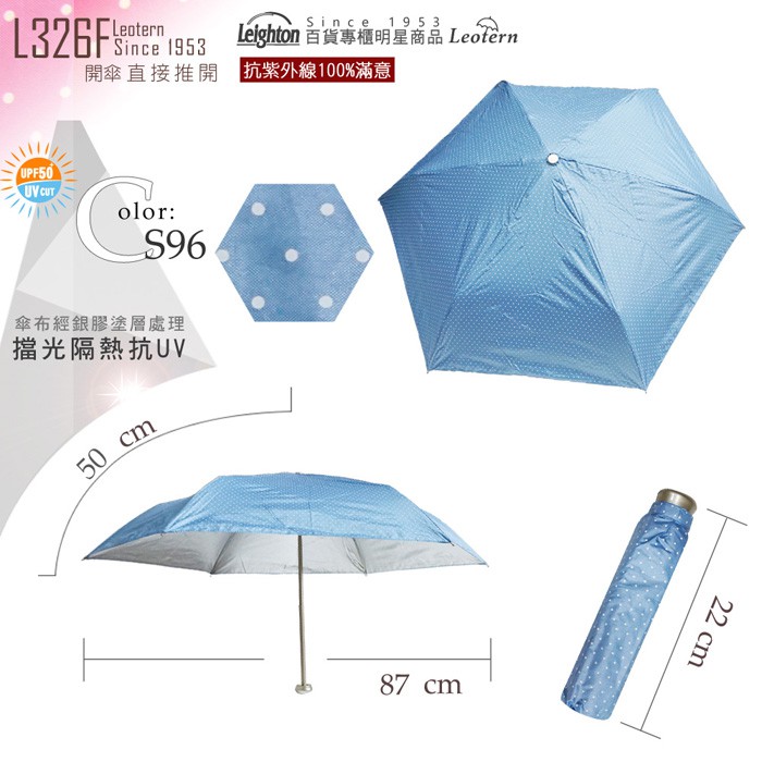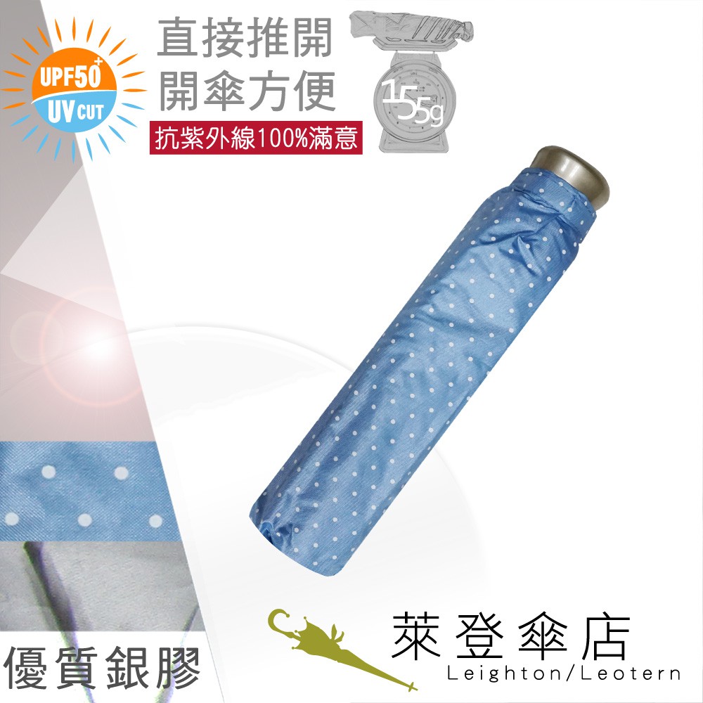 【萊登傘】雨傘 UPF50+ 易開輕傘 陽傘 抗UV 防曬 輕傘 銀膠 細點海藍
