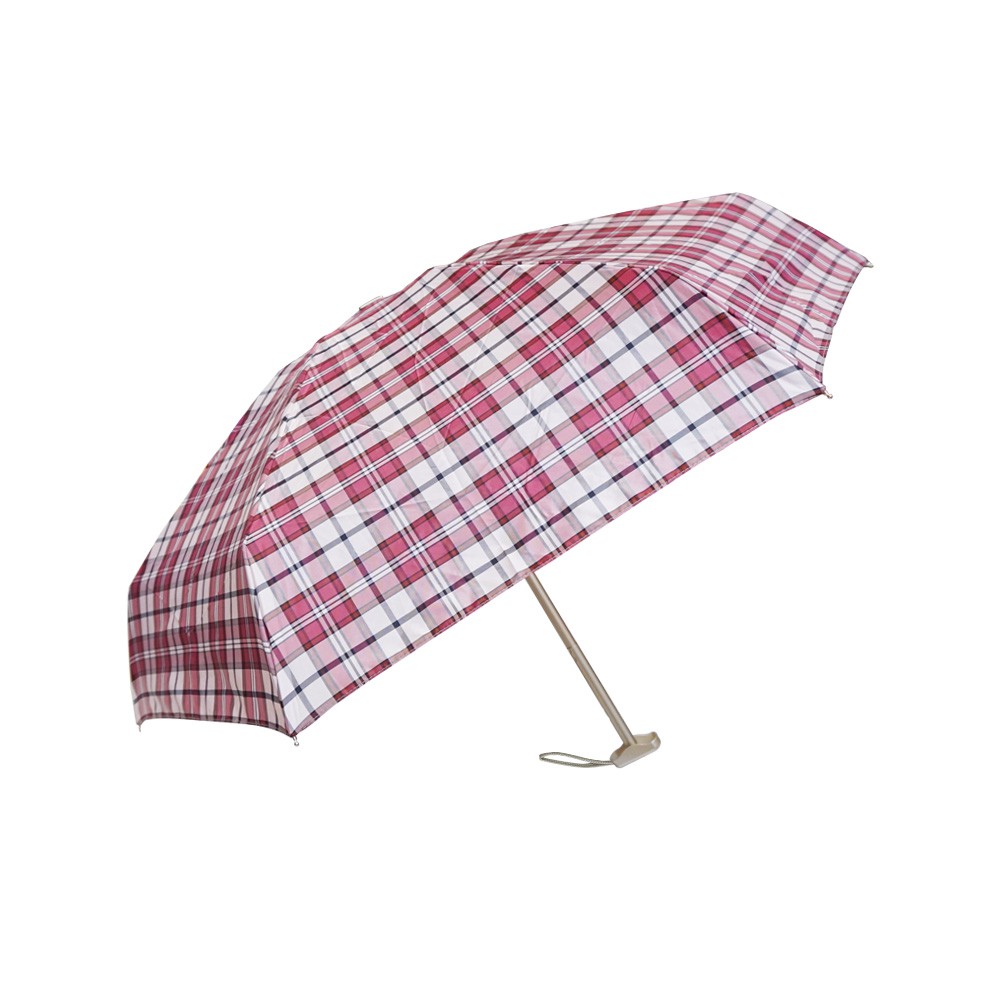 【萊登傘】雨傘 先染色紗格紋布 超短五折傘 陽傘 易甩乾 學院風 桃紅白格