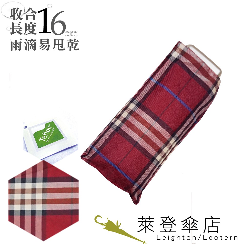【萊登傘】雨傘 先染色紗格紋布 超短五折傘 陽傘 易甩乾 學院風 紅黃米格