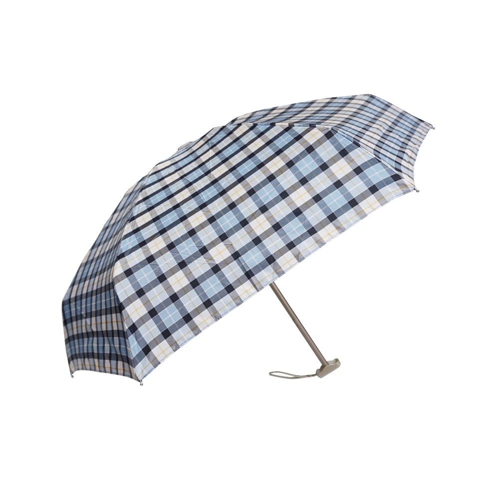 【萊登傘】雨傘 先染色紗格紋布 超短五折傘 陽傘 易甩乾 學院風 藍白格紋