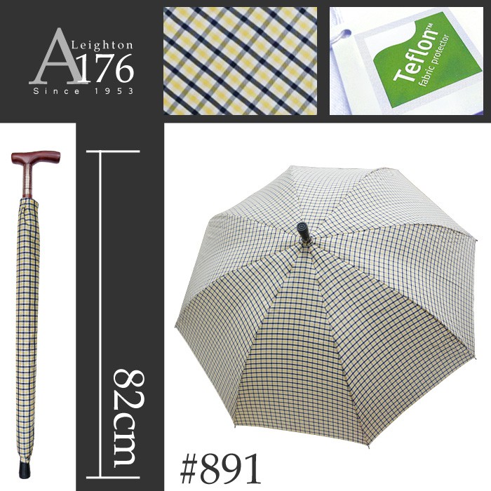 【萊登傘】雨傘 縮短版 調高健行傘 輔助 格紋布 長輩禮物 黃黑白格