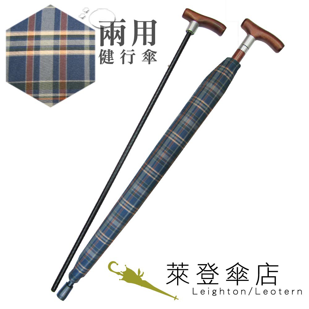 【萊登傘】雨傘 兩用健行傘 輔助 格紋布 長輩禮物 灰藍格紋