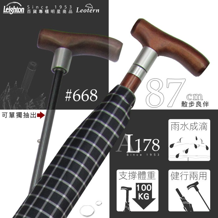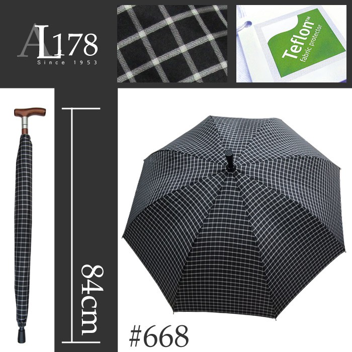 【萊登傘】雨傘 兩用健行傘 輔助 格紋布 長輩禮物 黑白細格